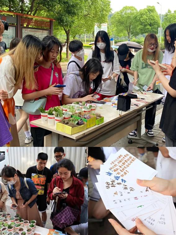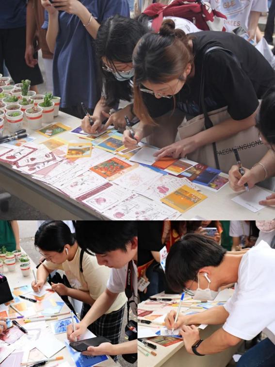 在活动时,每个人都为来往的同学积极引导,并告知他们活动的意义和目的。志愿者们忙碌地整理同学们写好的明信片、对绿植的摆放,明信片上很快写满了同学们的祝福语,将温暖传递给有需要的人。